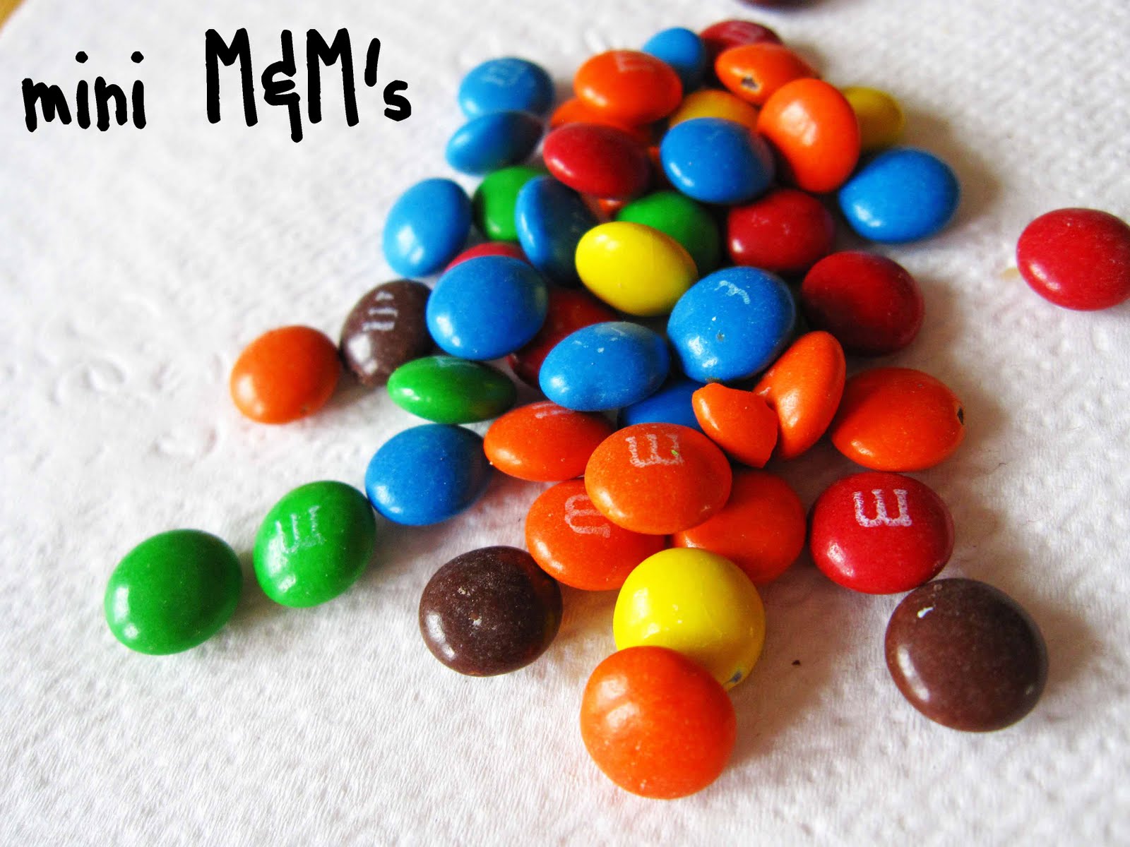 Pretty cute, huh? I found that mini cupcakes worked for me, but I would imagine you could use regular size cupcakes, you would just have to use standard size M&M’s!